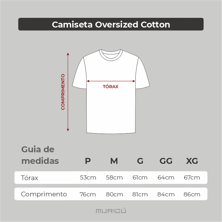A Camiseta Oversized Murigú é confeccionada em cotton (95% algodão e 5% elastano), garantindo toque macio, leveza e caimento solto. A modelagem ampla traz aquele visual moderno e esportivo, perfeita para treinar com liberdade ou compor looks casuais fora da academia.